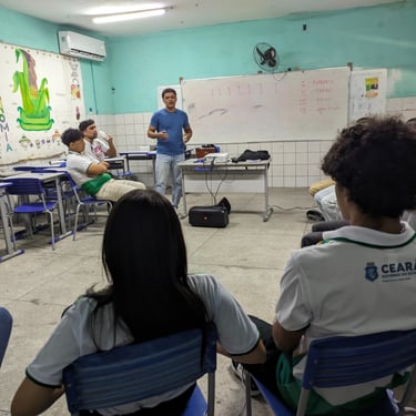 A oficina aconteceu durante a manhã do dia 29 de Agosto de 2025 e contou com apoio da escola por meio da parceria para mobilização da turma.